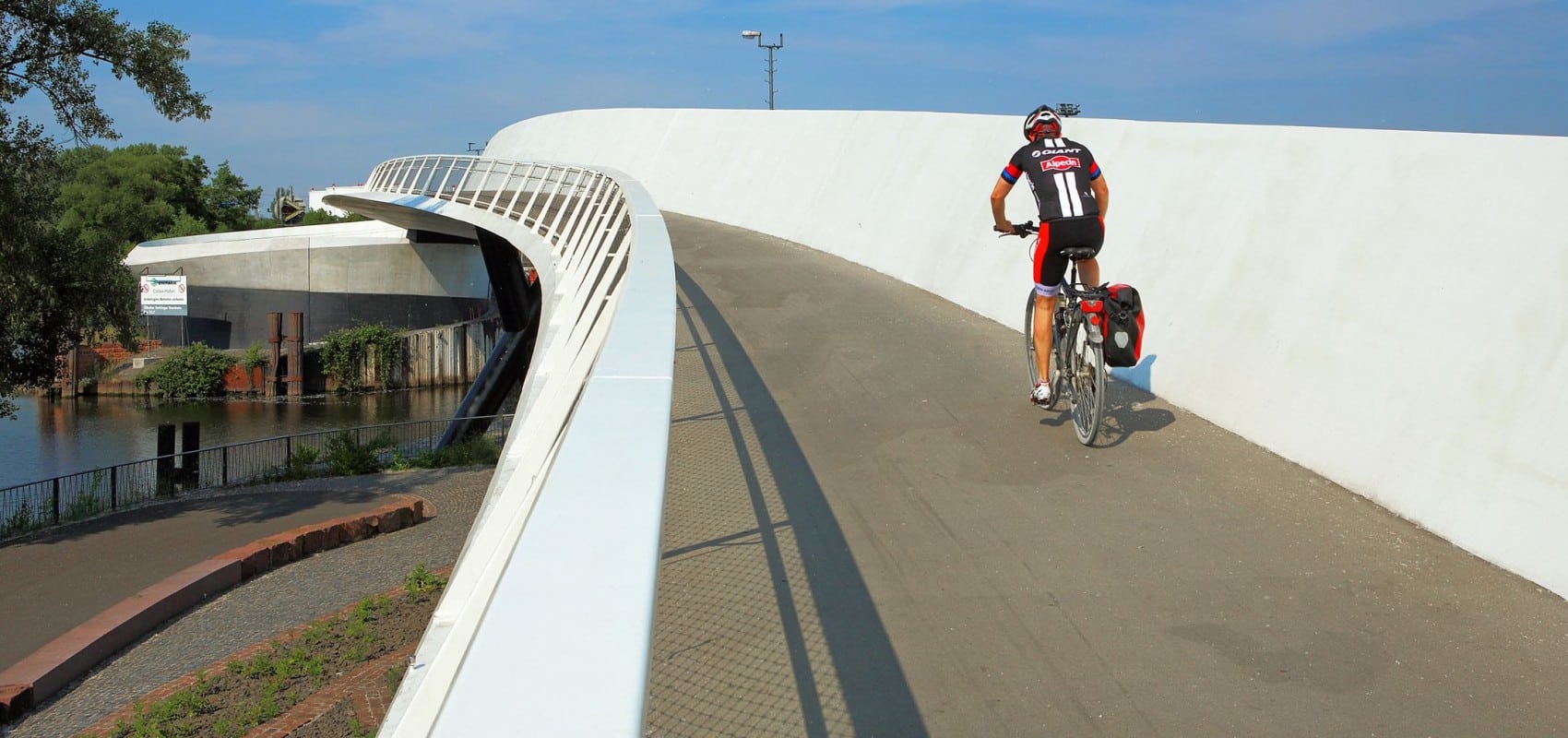 Pedestrian and cyclist bridge over the Raunheim oil harbour